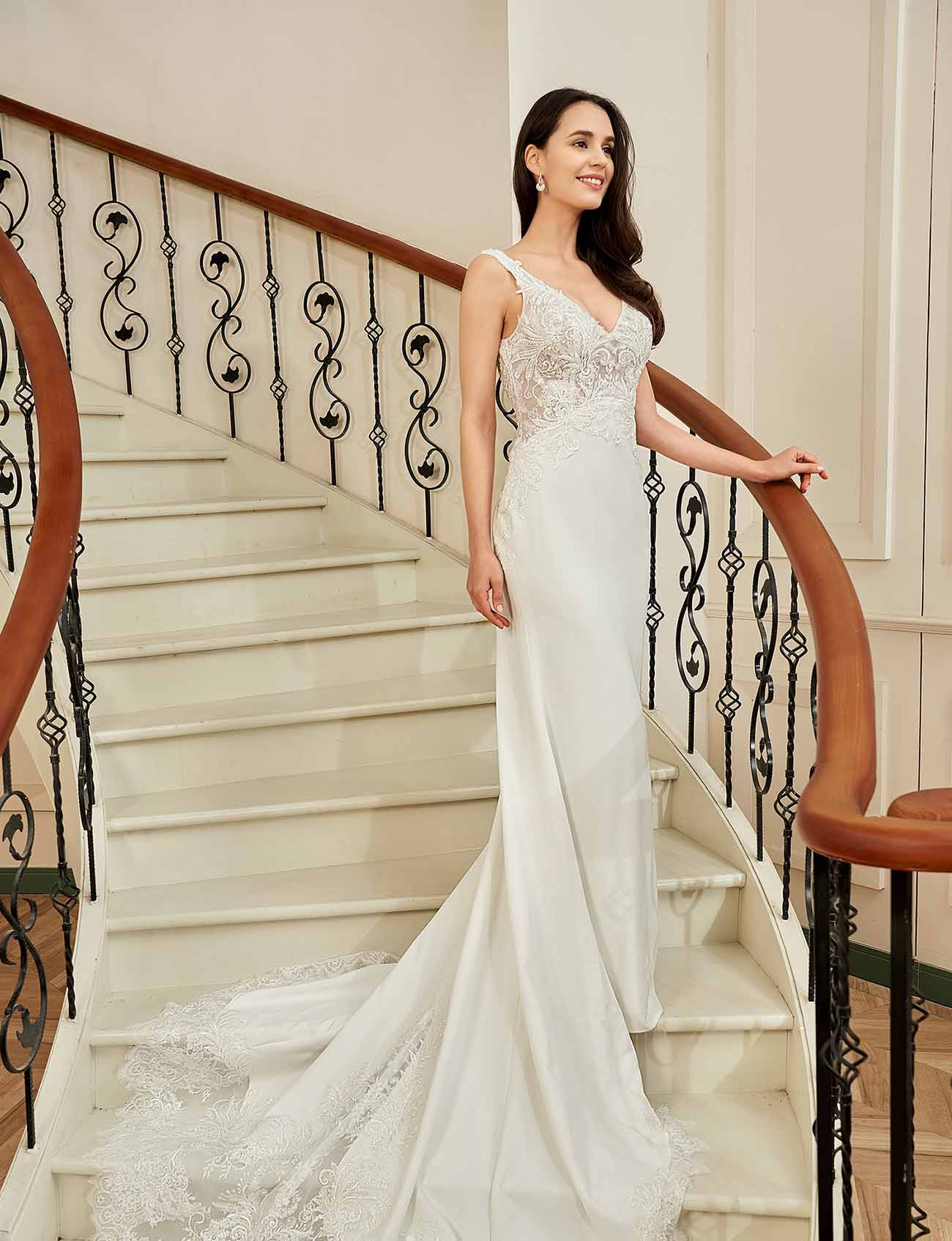 Featuring: Illusion Motifs Bodice, Stretch Crepe Skirt, Scalloped Lace Court Train
