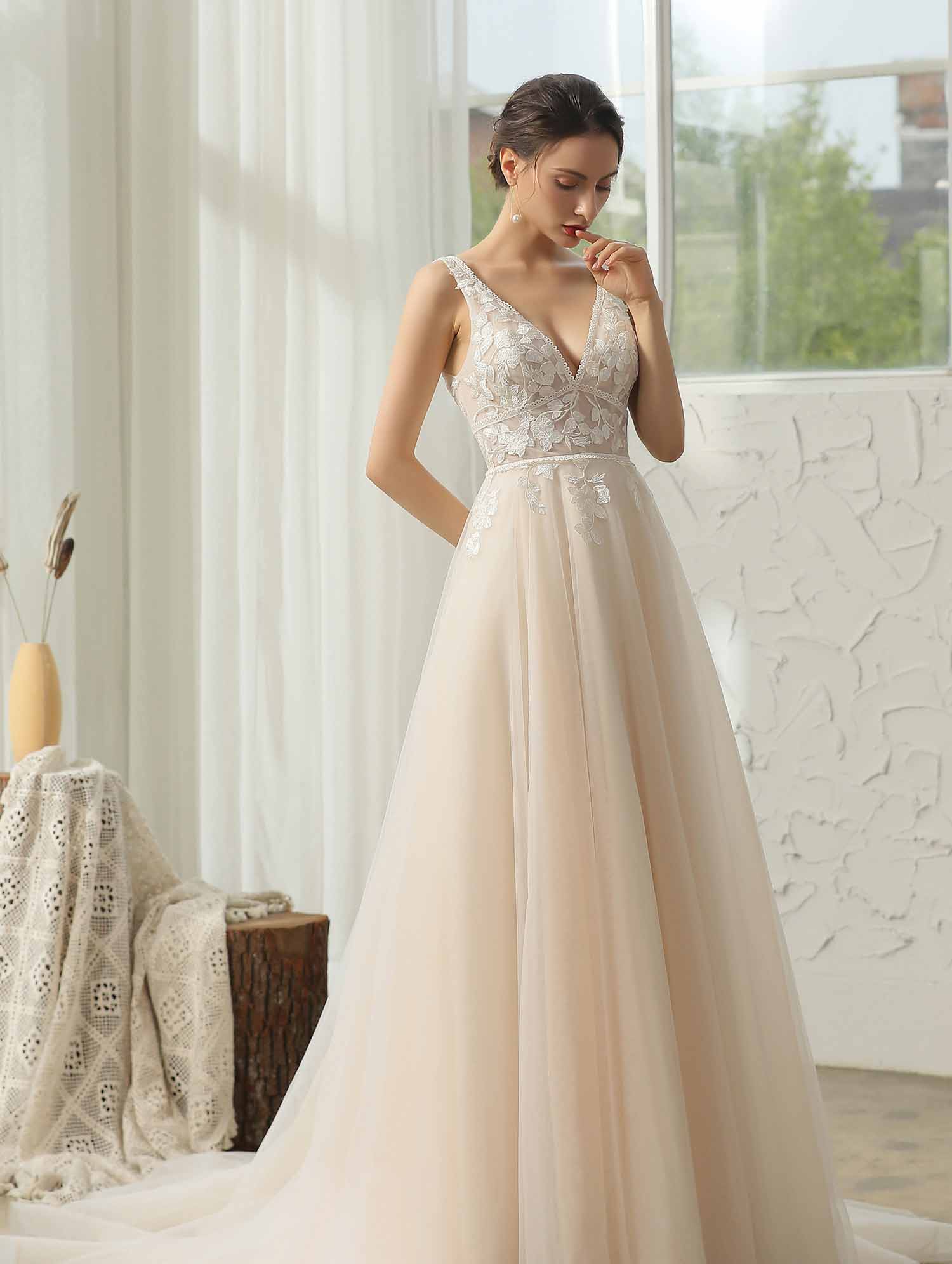Pair this dress with sparkly hairpins and wear a chapel veil with appliques to add to the beauty of the dress.